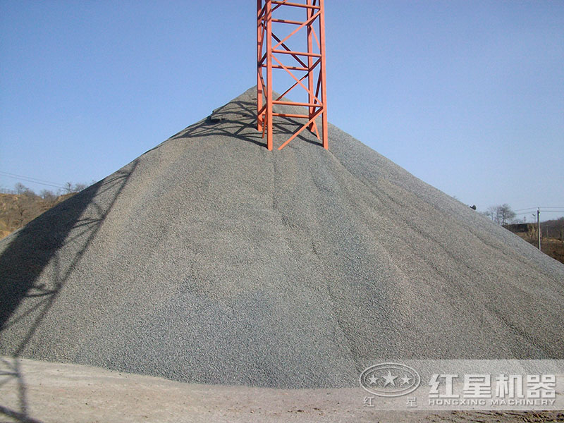 流程:原料經(jīng)振動給料機(jī)簡單地去除泥土廢料后,送入粗碎設(shè)備中進(jìn)行初步破碎; 之后由輸送機(jī)運(yùn)到中細(xì)碎設(shè)備處進(jìn)行二次破碎;接下來由振動篩篩分大骨料,再由制砂機(jī)進(jìn)行制砂后再次篩分小骨料,結(jié)尾工作為除塵、選粉。