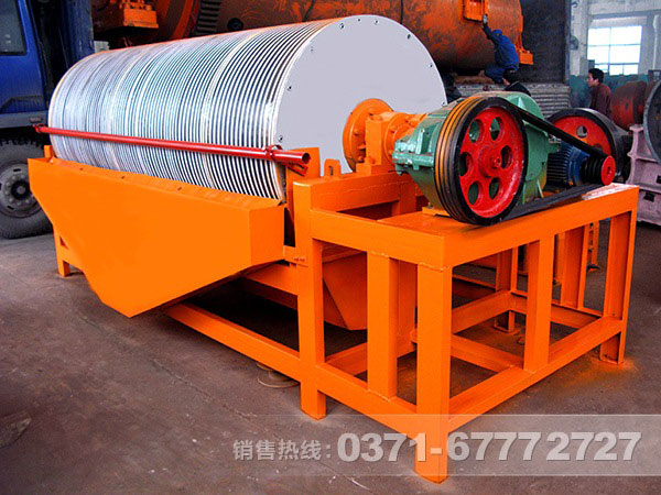 轉(zhuǎn)數(shù)高的磁選機(jī)在運(yùn)轉(zhuǎn)中,由于速度比較快,磁性小些的連生體和脈石上來(lái)的機(jī)會(huì)就少,只有那些磁性較高的礦粒才可能選別上來(lái),因而精礦質(zhì)量就高些。反之轉(zhuǎn)數(shù)低,速度相對(duì)較慢,由于磁感應(yīng)作用使磁性弱些的礦粒也有機(jī)會(huì)選別上來(lái),造成精礦質(zhì)量受到影響。所以在磁選過(guò)程中, 一般地說(shuō)磁選機(jī)直徑小的采用高轉(zhuǎn)數(shù),例如Φ600毫米直徑,采用40轉(zhuǎn)/分,直徑大的采用低轉(zhuǎn)數(shù),例如Φ750毫米直徑,采用35轉(zhuǎn)/分。
